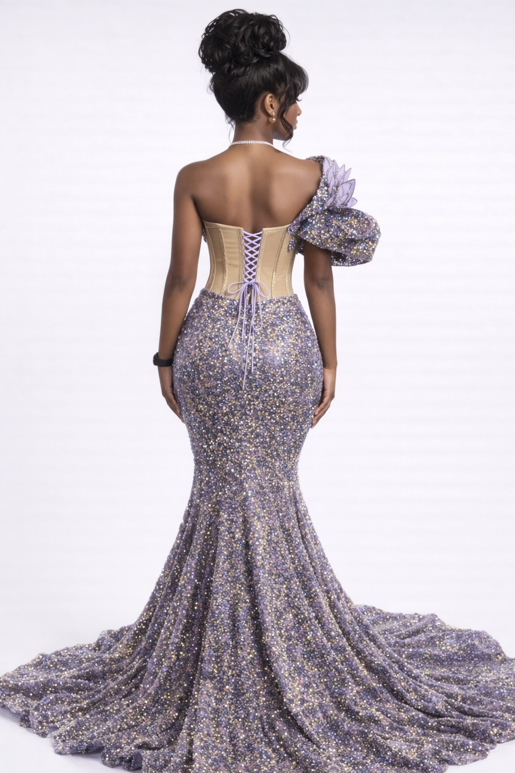- Light purple lace-up corset back for adjustable fit